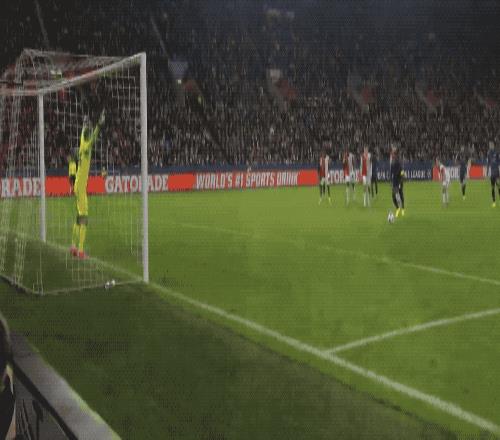 第35分钟,戴上队长袖标的萨卡操刀主罚,球速快角度刁,门将判断正确也无济于事,枪手取得领先,这也是萨卡本赛季欧冠的第2个进球。
