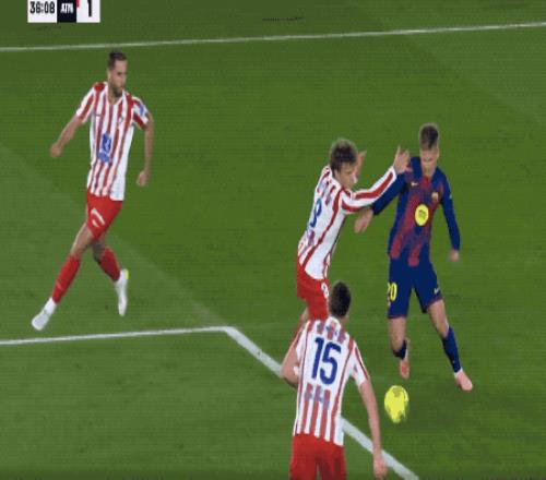 开场之后,亚马尔连续送出外脚背传球,试图搅乱马竞的防线。两队拼抢激烈,攻防转换的节奏相当快。